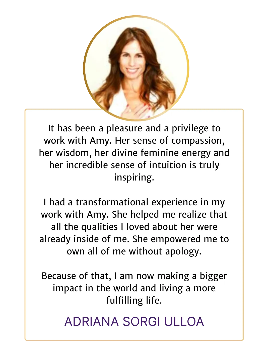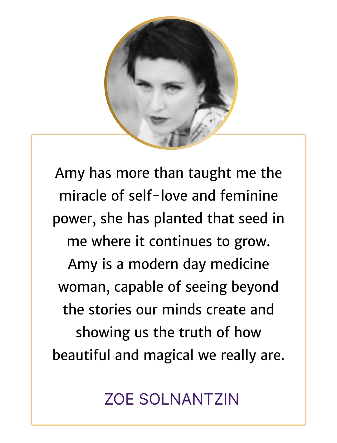 Before working with Amy, life felt heavy and I didn’t know how to fully access my feminine energy. Through her gentle, sovereign guidance, I learned how to settle in my body, deepen my intuition, and set boundaries that align with my truth. The power of sisterhood and healing I experienced with her was absolutely priceless.